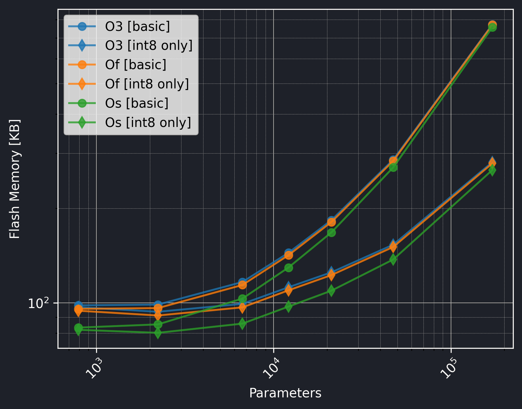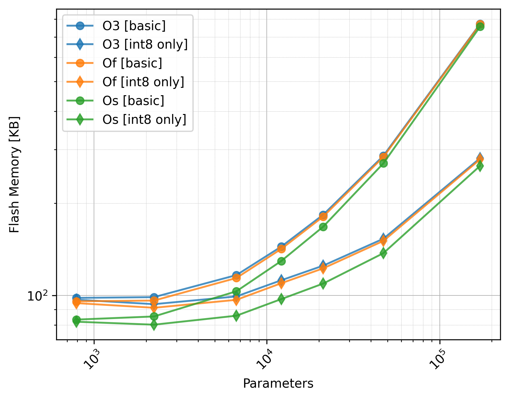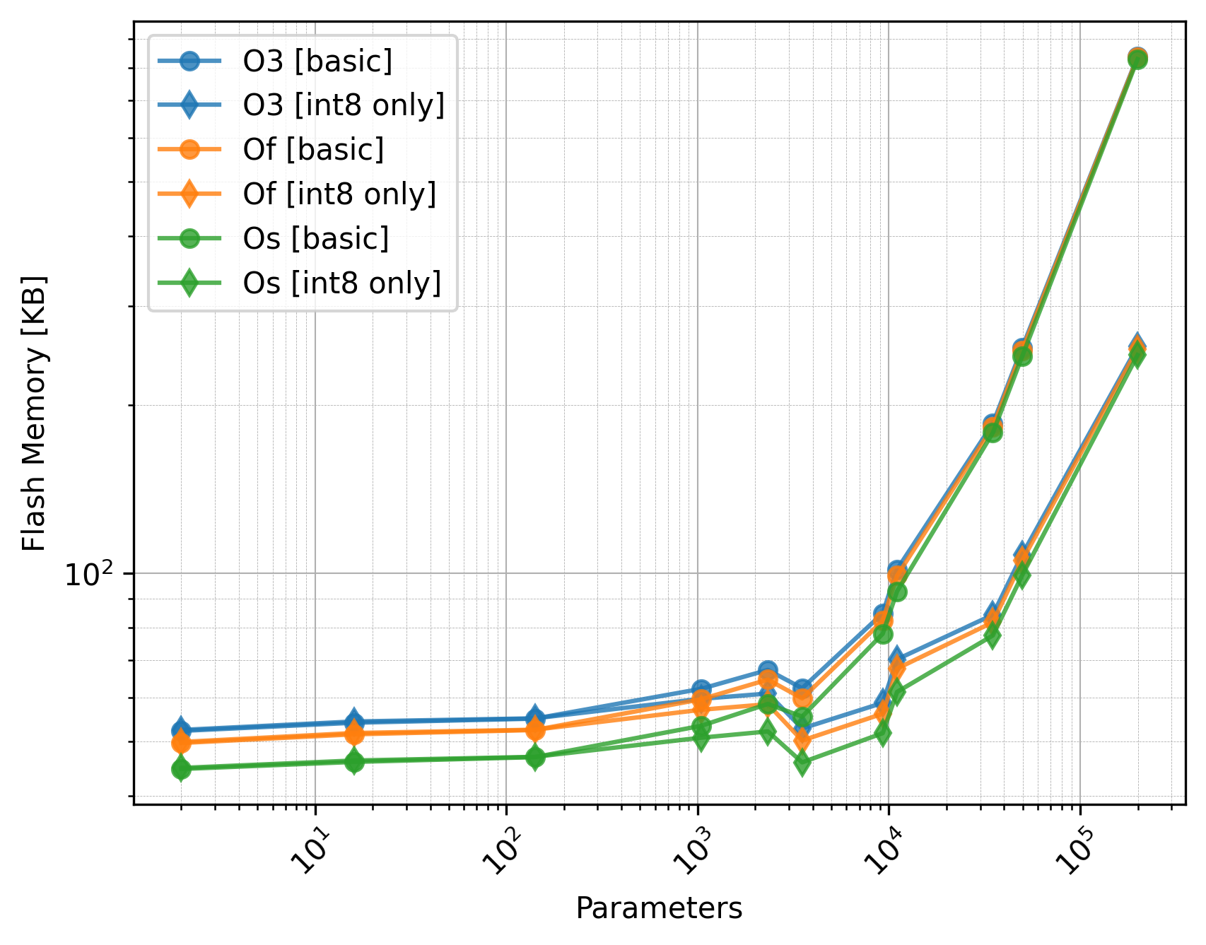 Flash Size: The flash size of Os is slightly better than O3 and Of.