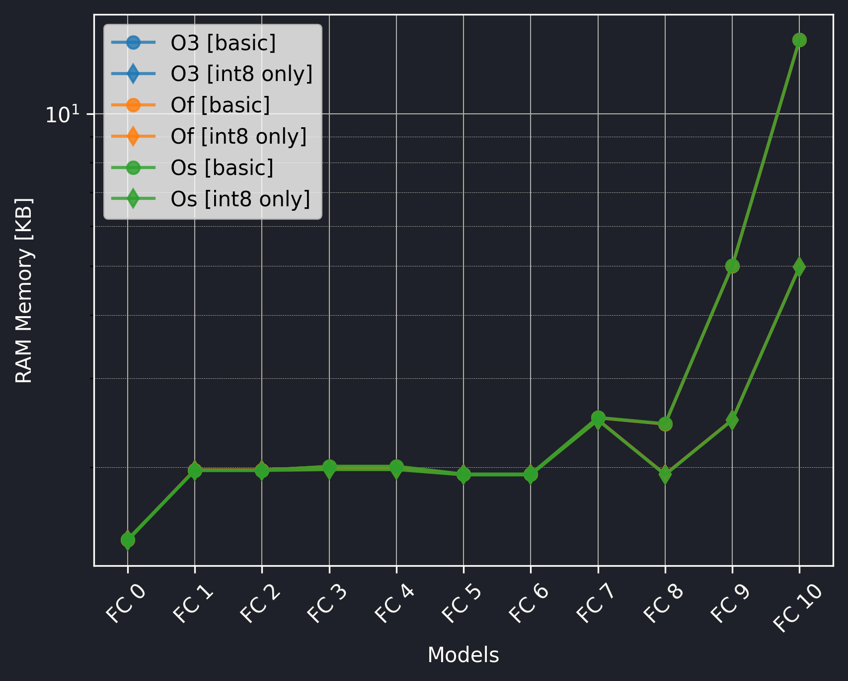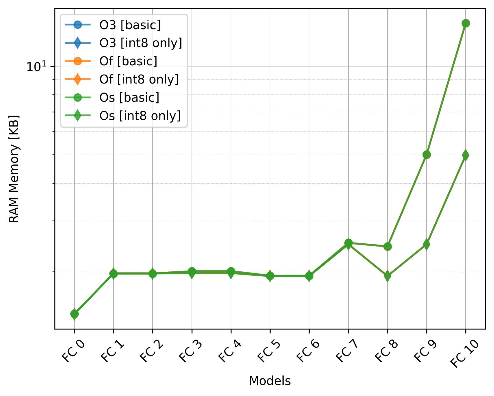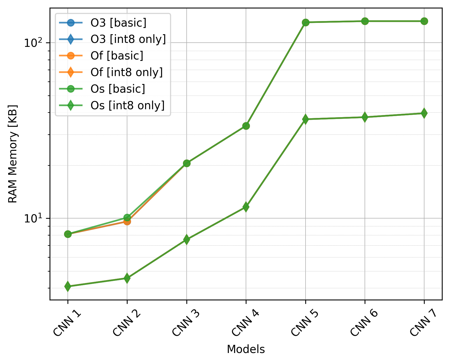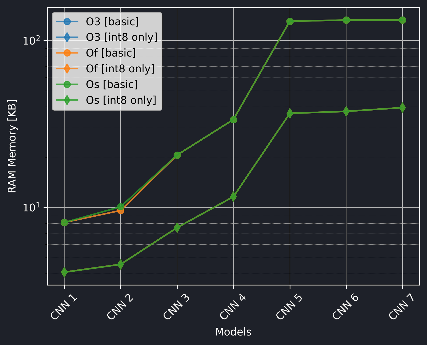 In this study, we aim to find out the impact of varying compiler optimization levels (O3, Of, and Os) on the performance of TFLM models.