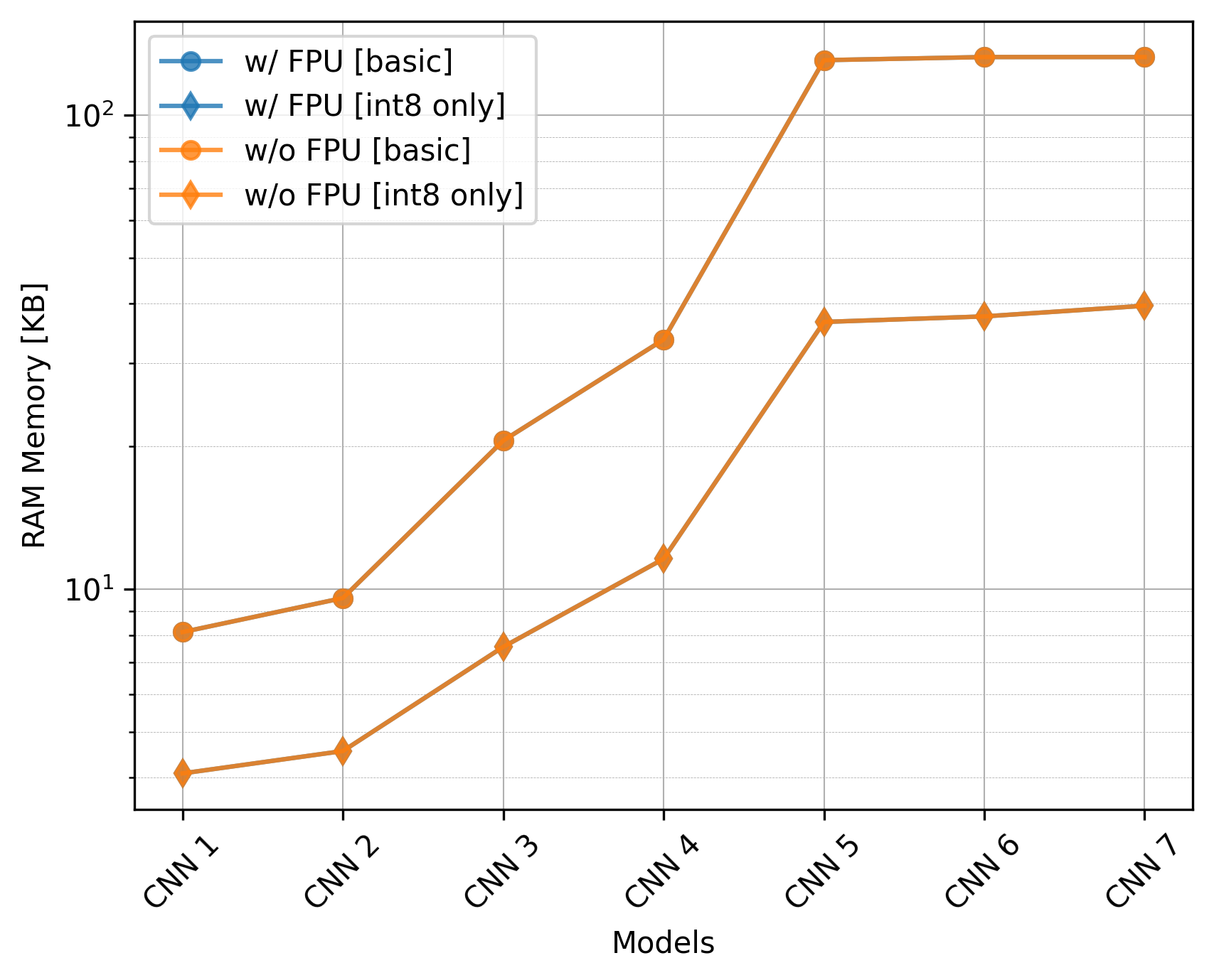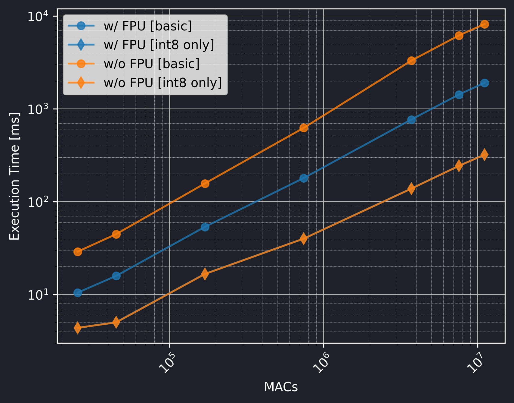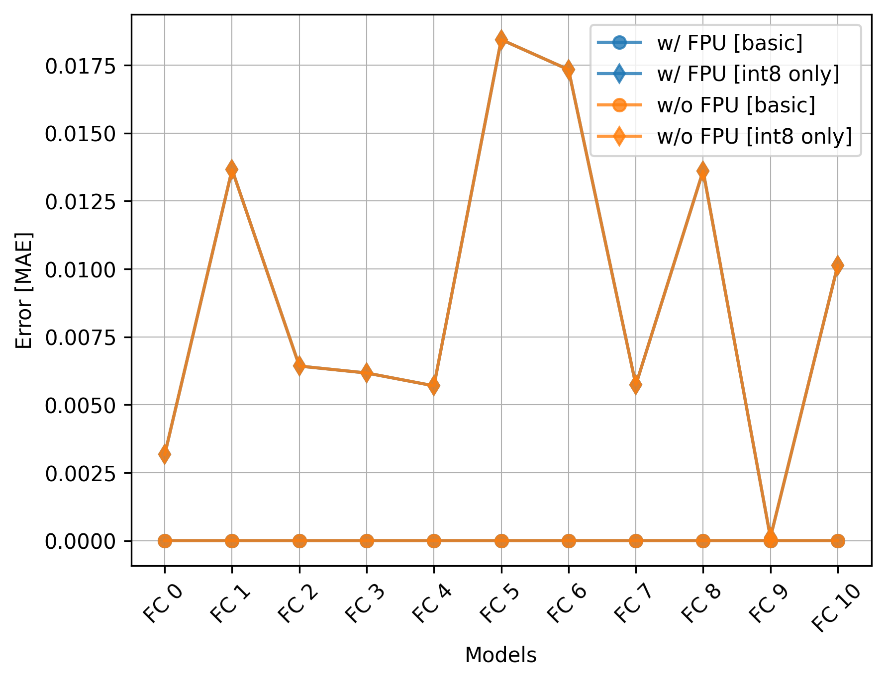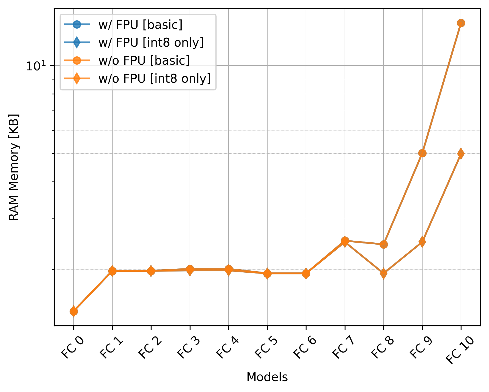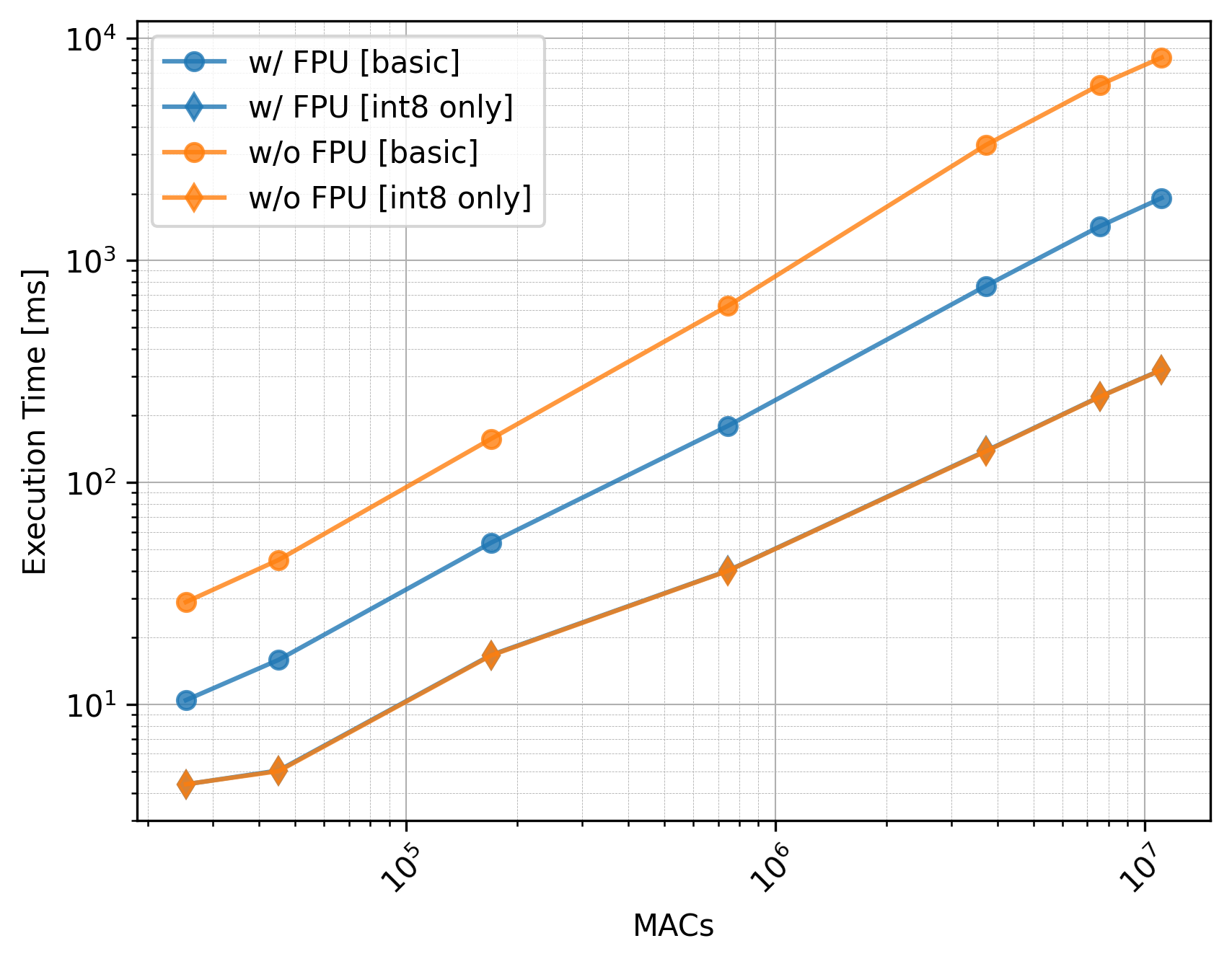 The only effect of the FPU is on the execution time of the basic models which is very significant. Still, if using int8 only, utilizing the CMSIS-NN library can be even more beneficial and there is no need for the FPU.