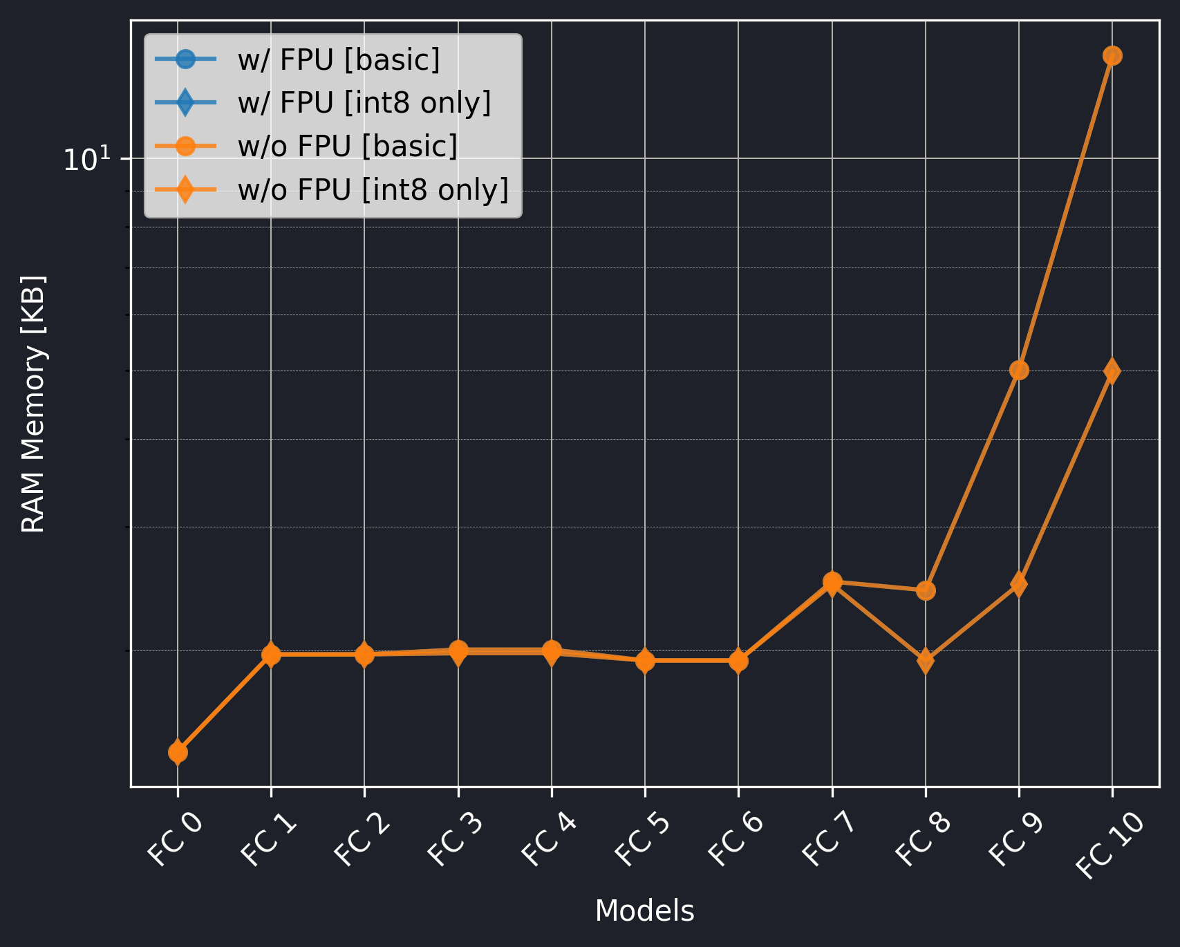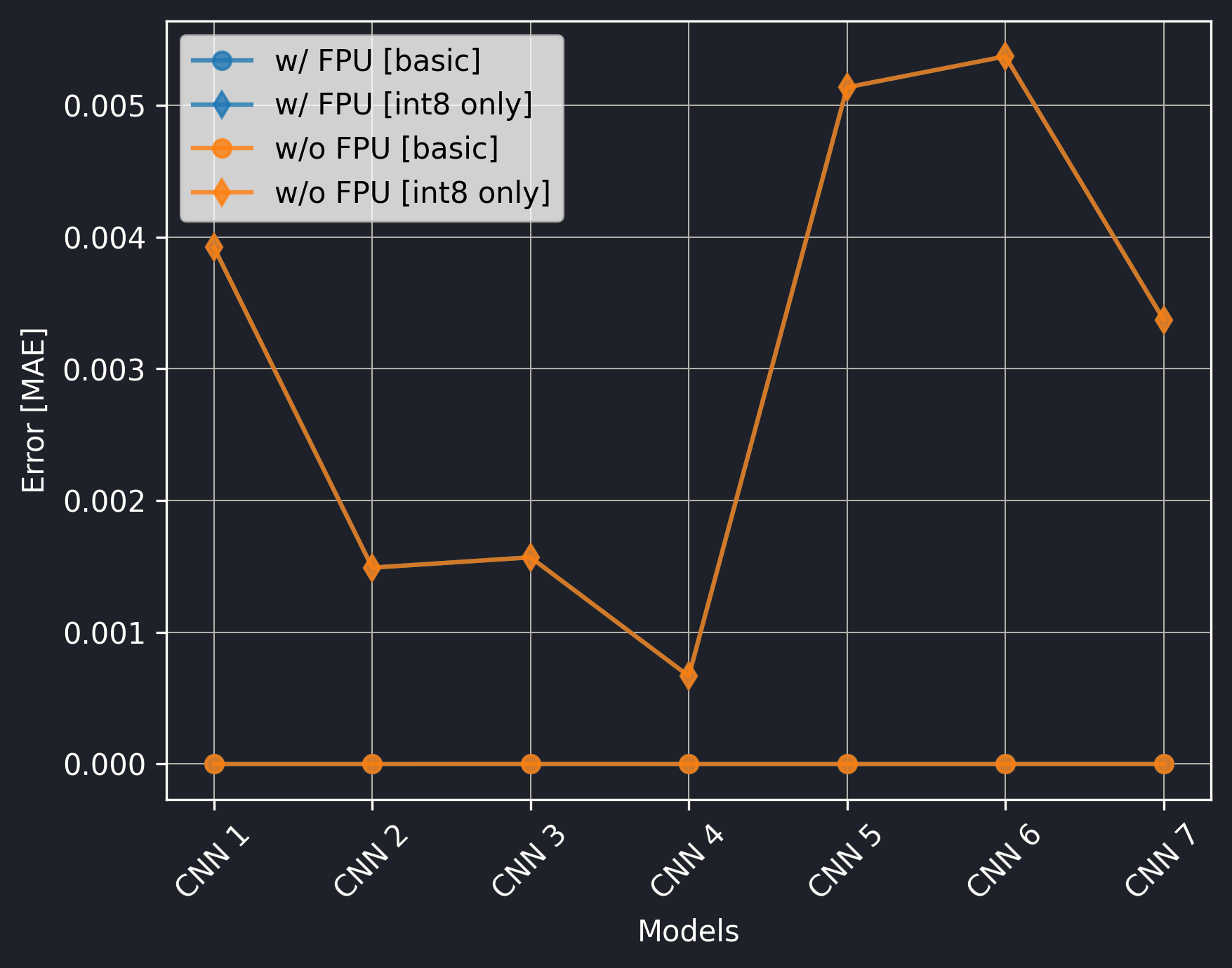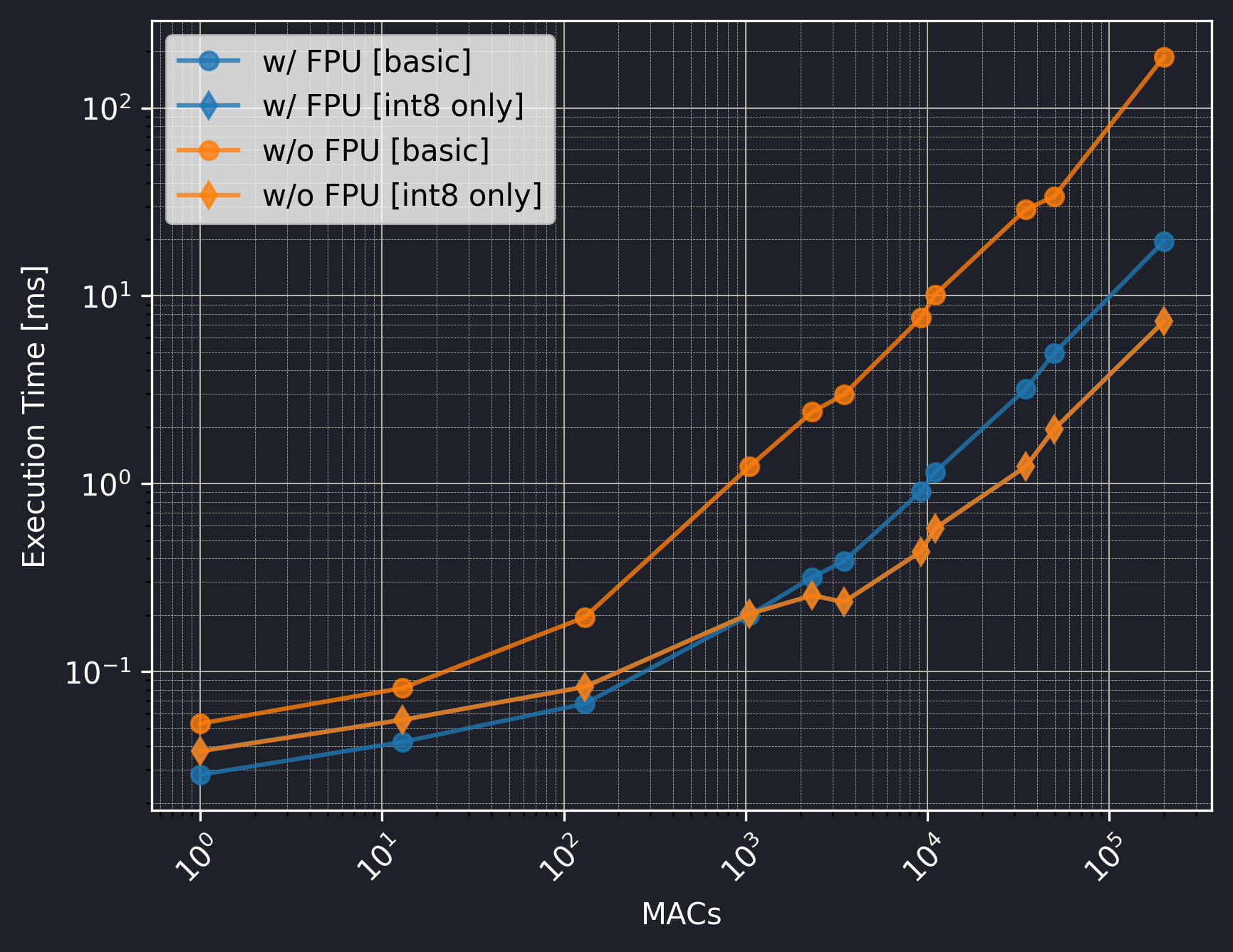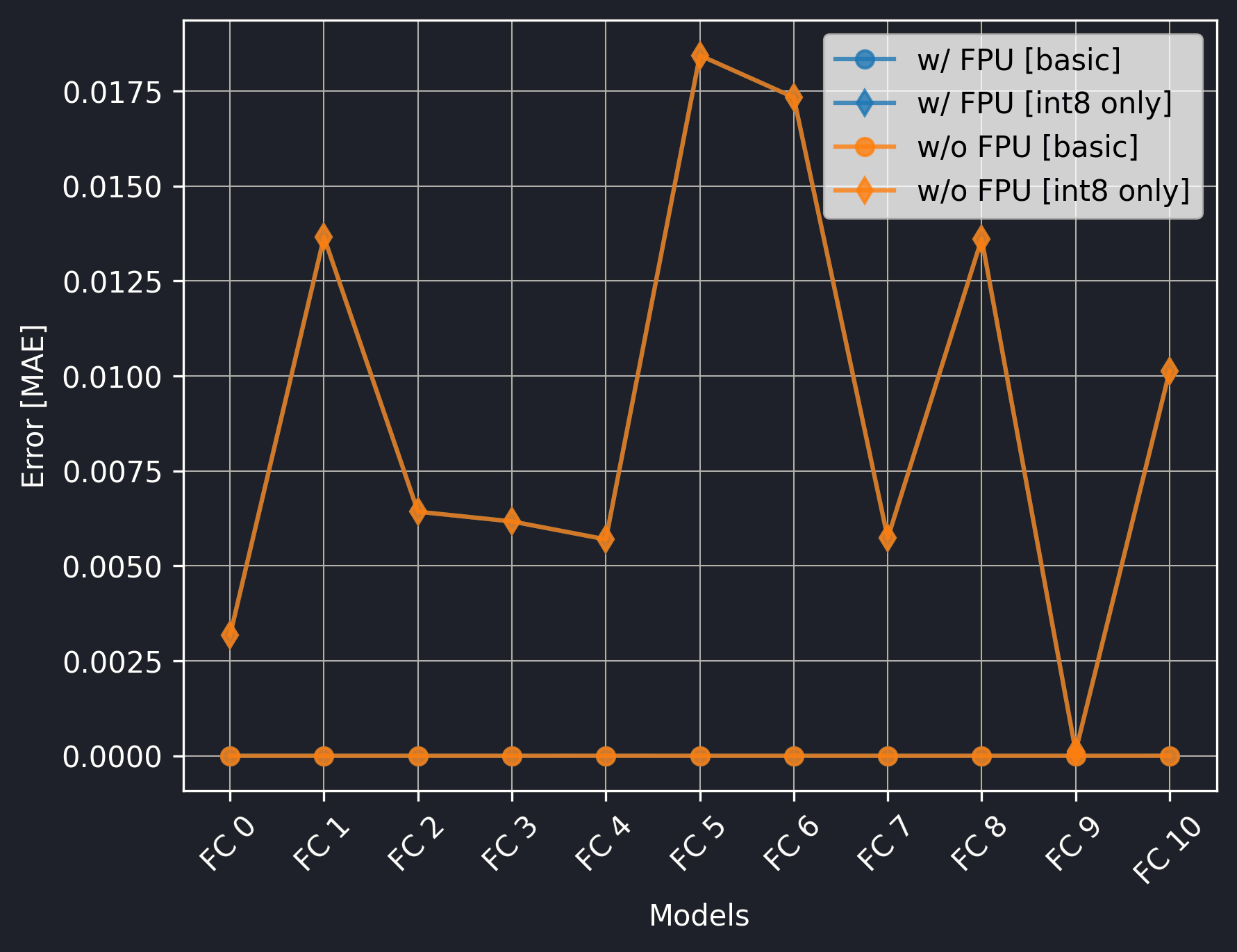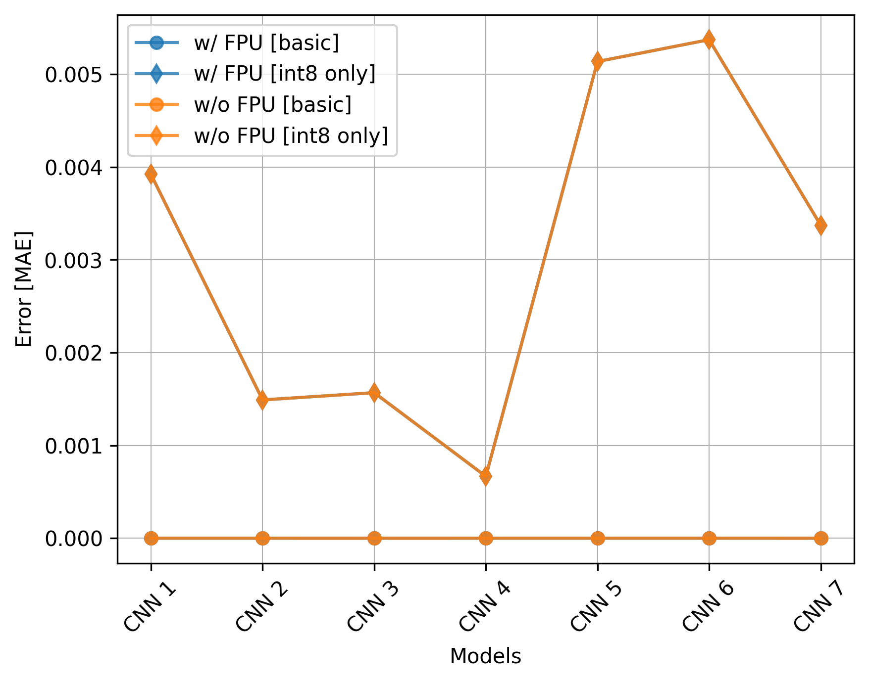The only effect of the FPU is on the execution time of the basic models which is very significant. Still, if using int8 only, utilizing the CMSIS-NN library can be even more beneficial and there is no need for the FPU.