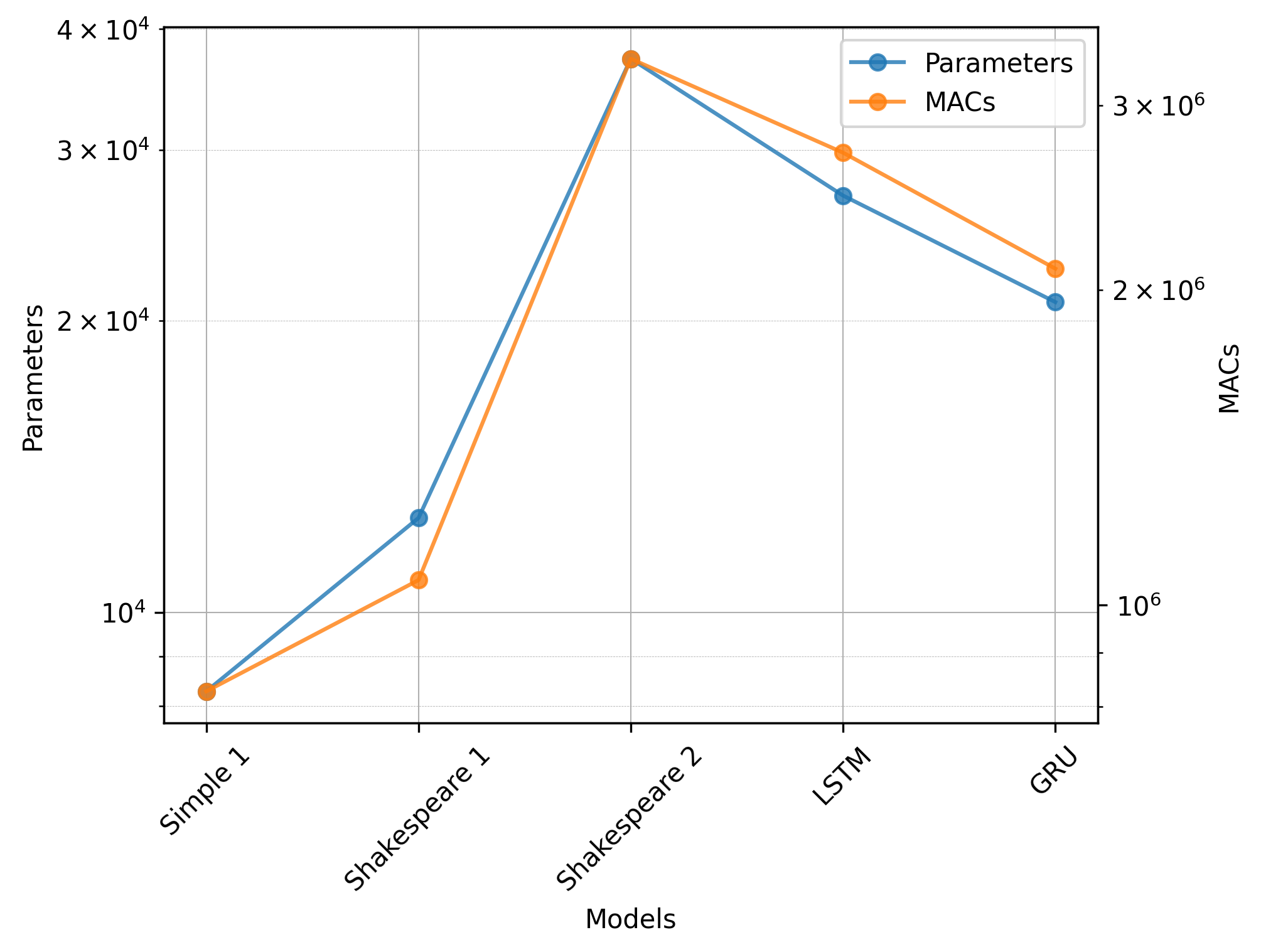 Simple 0 is excluded from the figures due to its negligible resource requirements compared to the other models and keeping the figures readable. Simple 2 is also excluded from the figures because its basic version failed to run. All models' information is available in the tables below.
