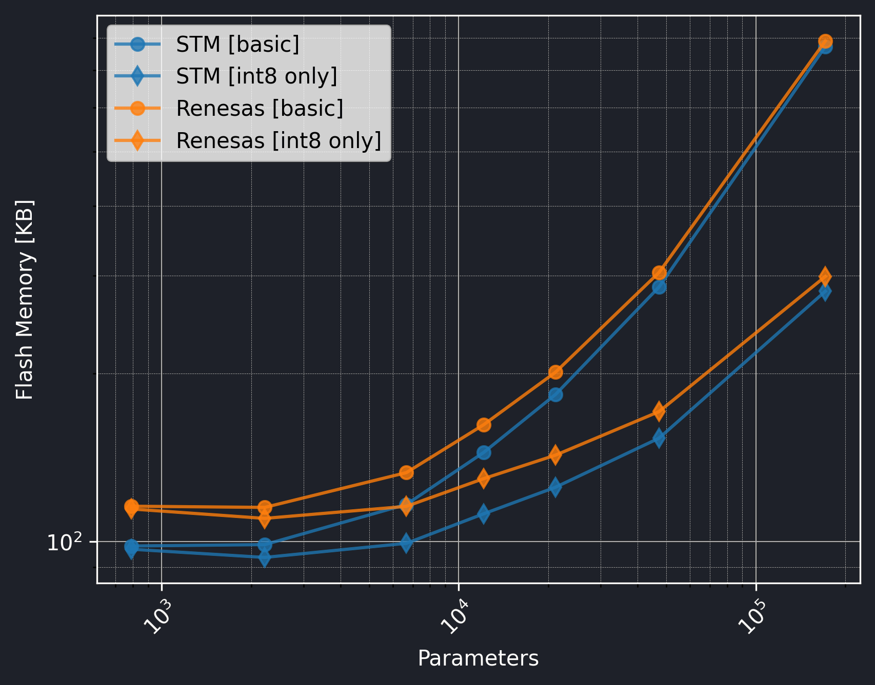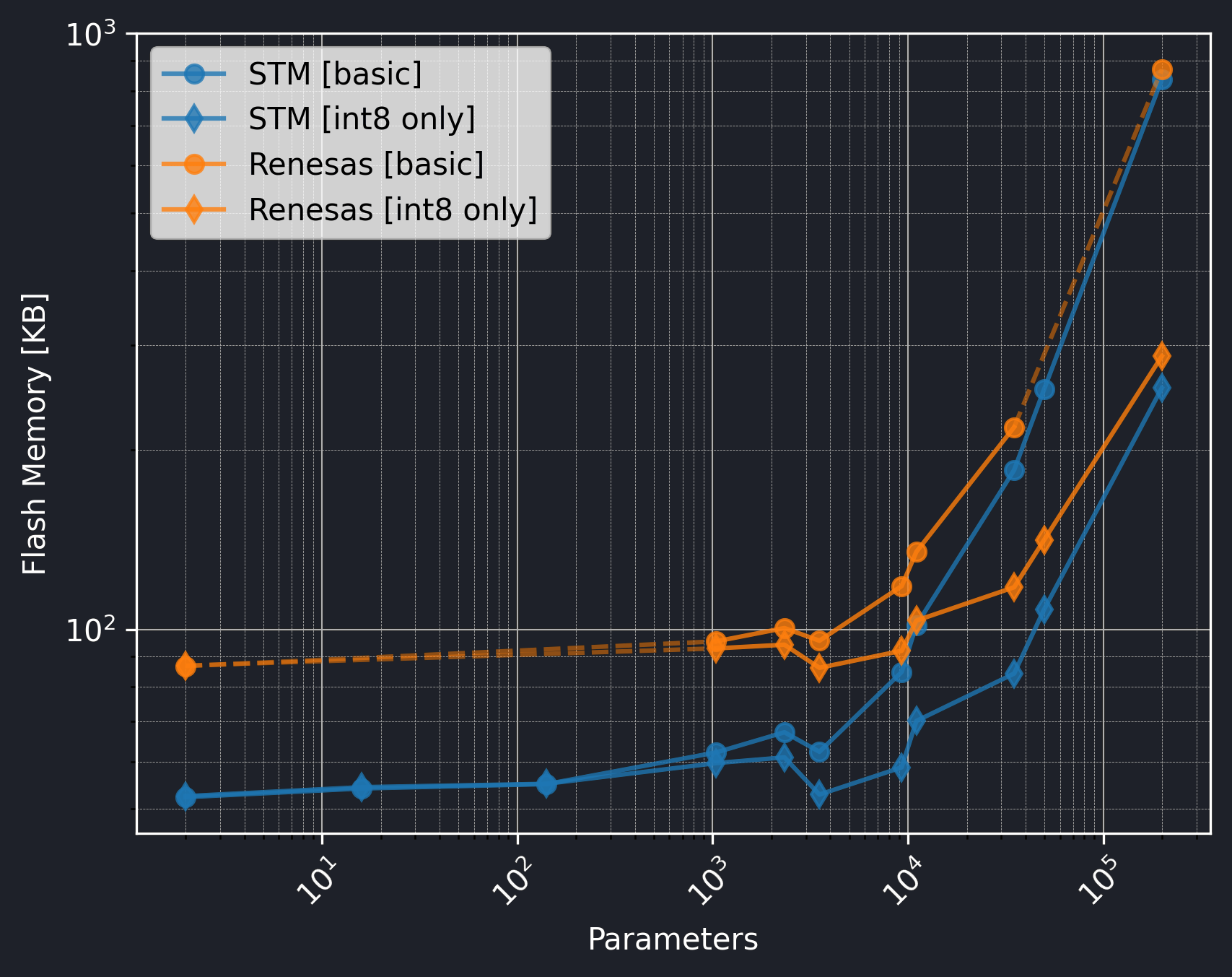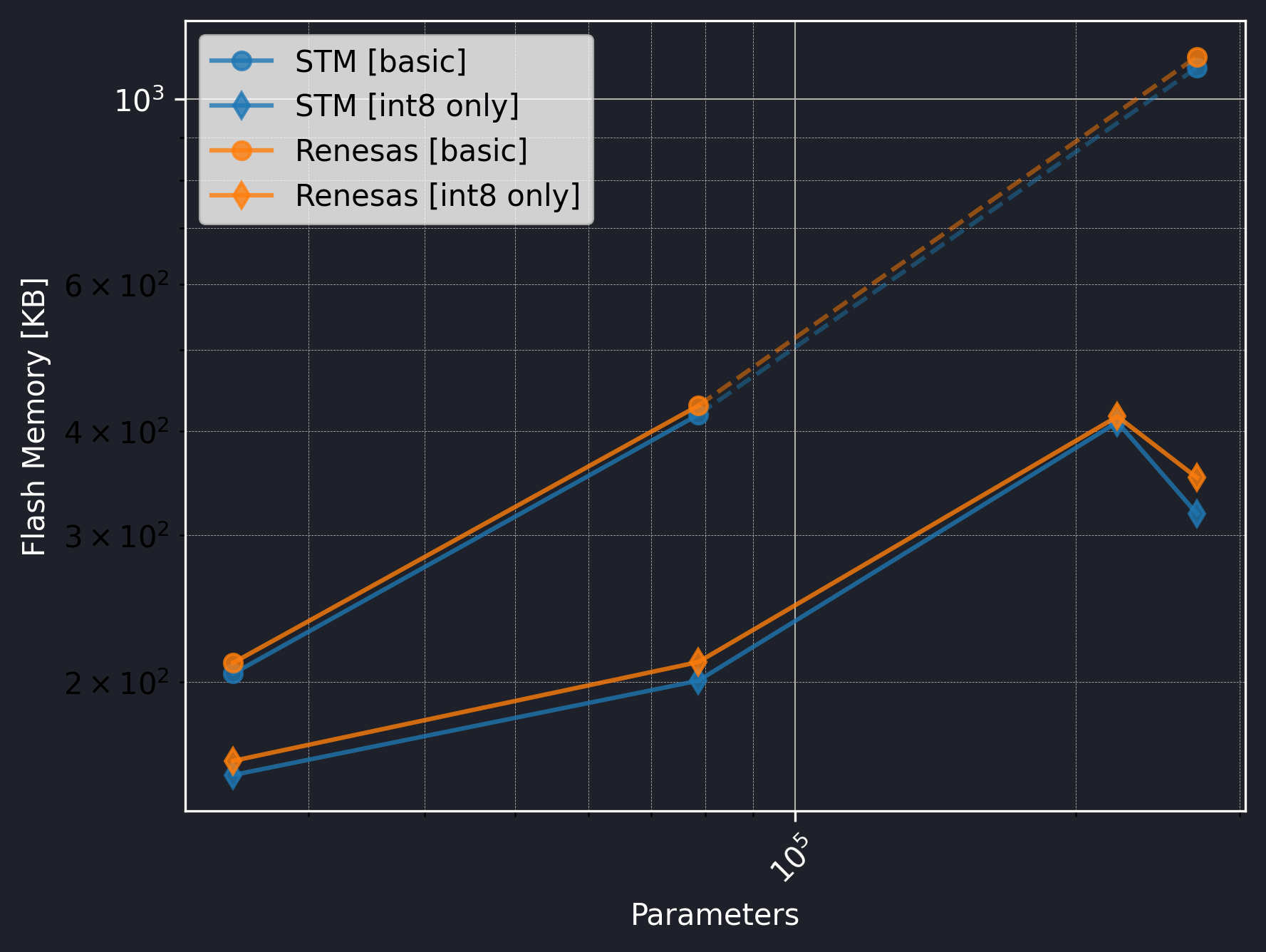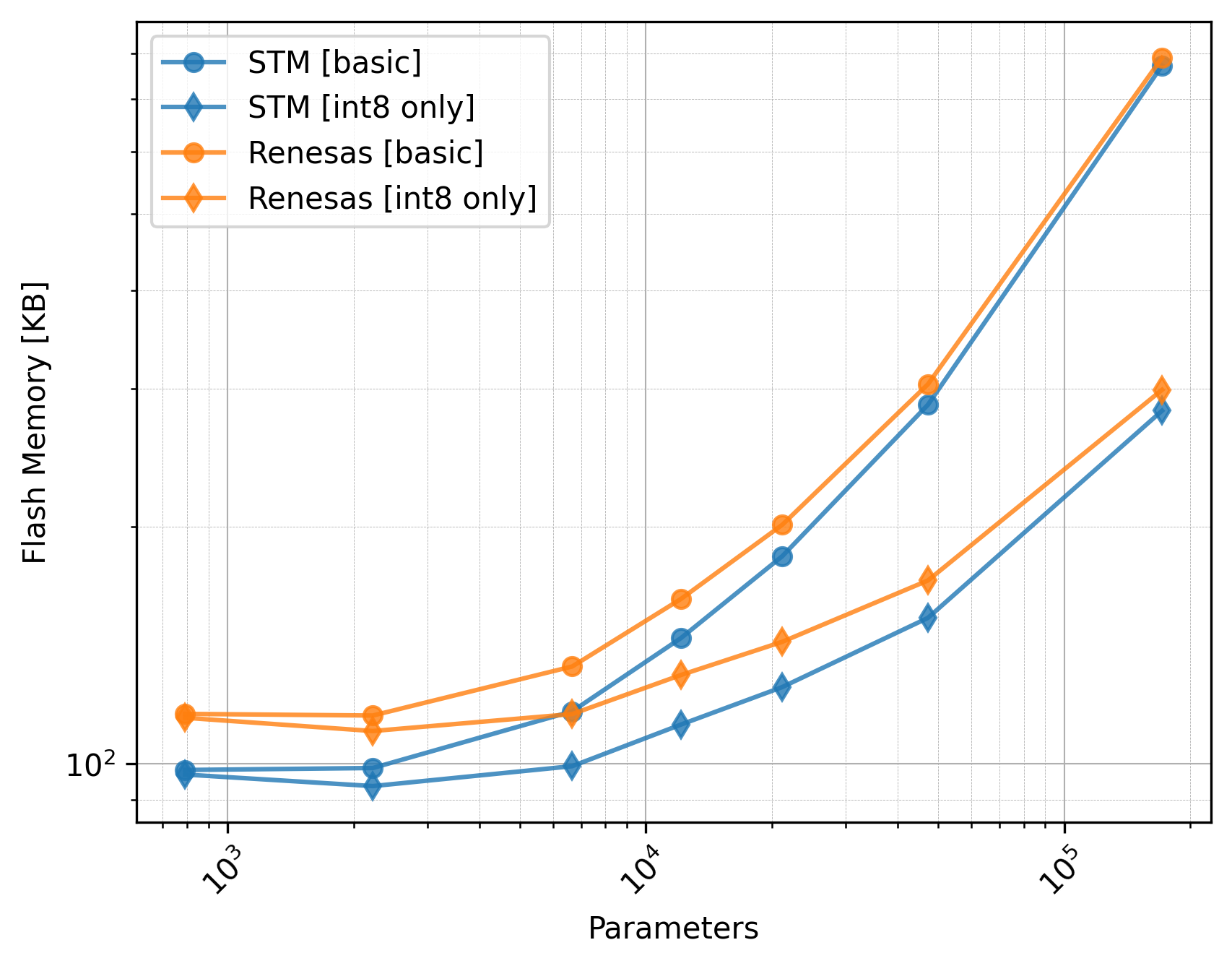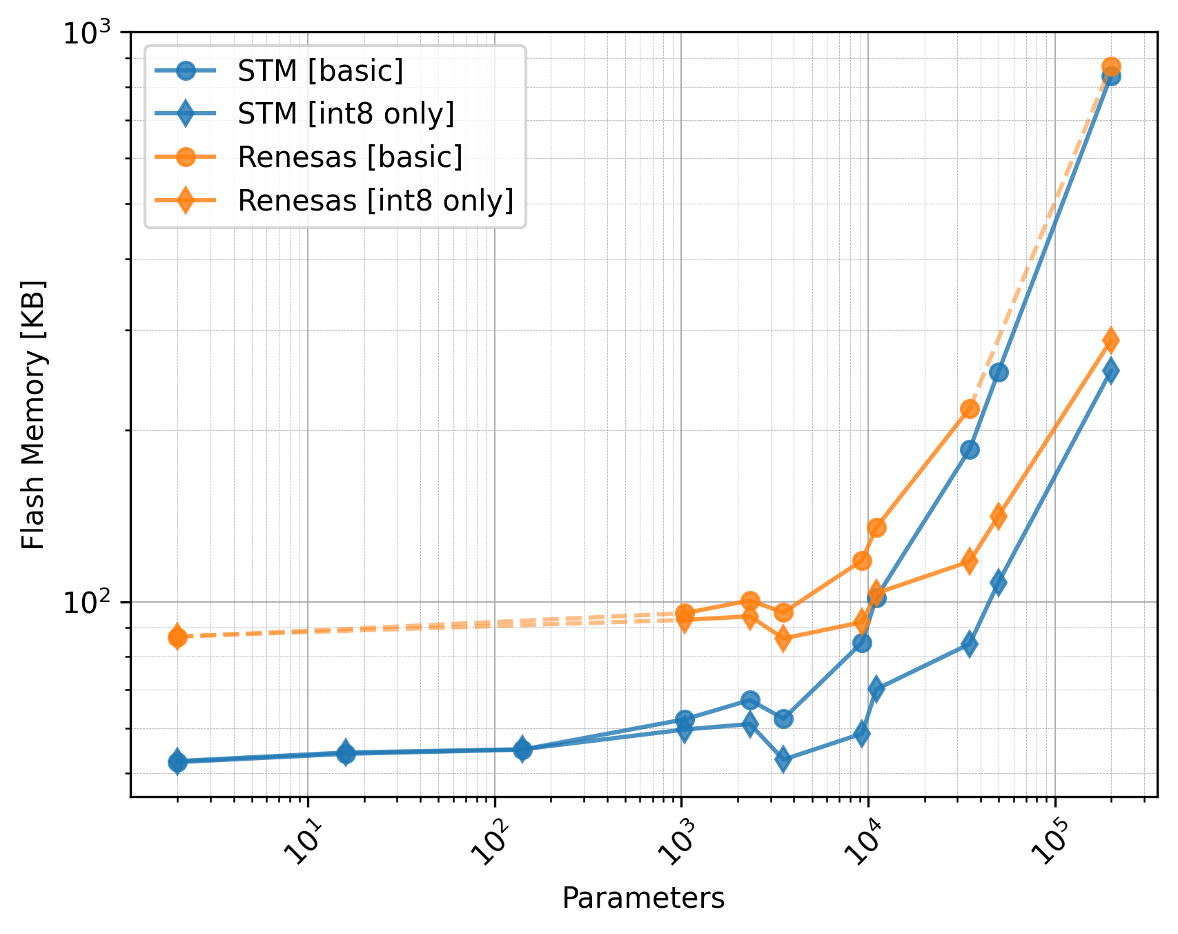 The Renesas board did not utilize the CMSIS-NN library, so we should exclude the int8 only versions from the comparison.